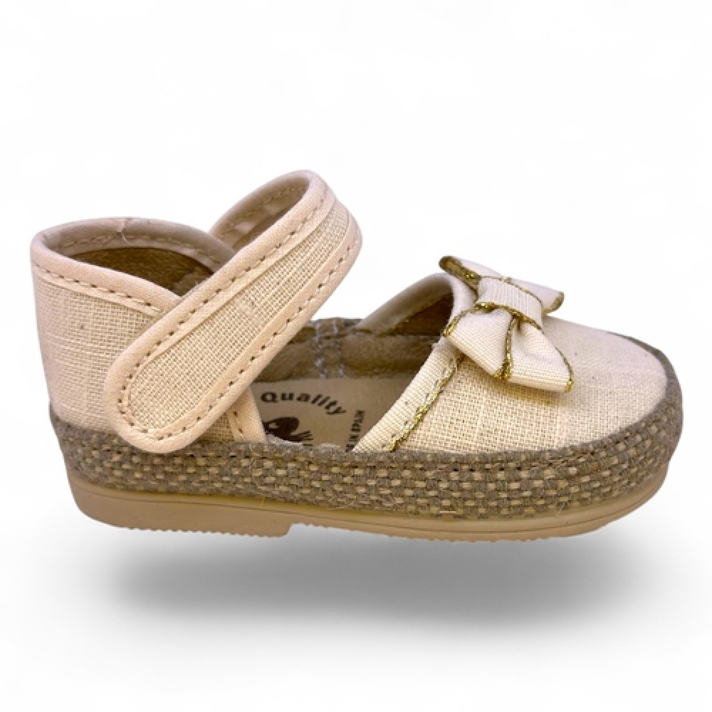 Σε μπεζ χρώμα με όμορφο φιόγκο που διακοσμεί το παπούτσι.
