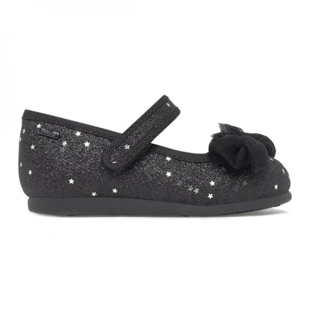 Ιδανικές για ιδιαίτερες εμφανίσεις. Σε μαύρη απόχρωση με glitter και αστεράκια που δίνουν ιδιαίτερη λάμψη. Με έναν κομψό τούλινο φιόγκο στο μπροστινό μέρος.
